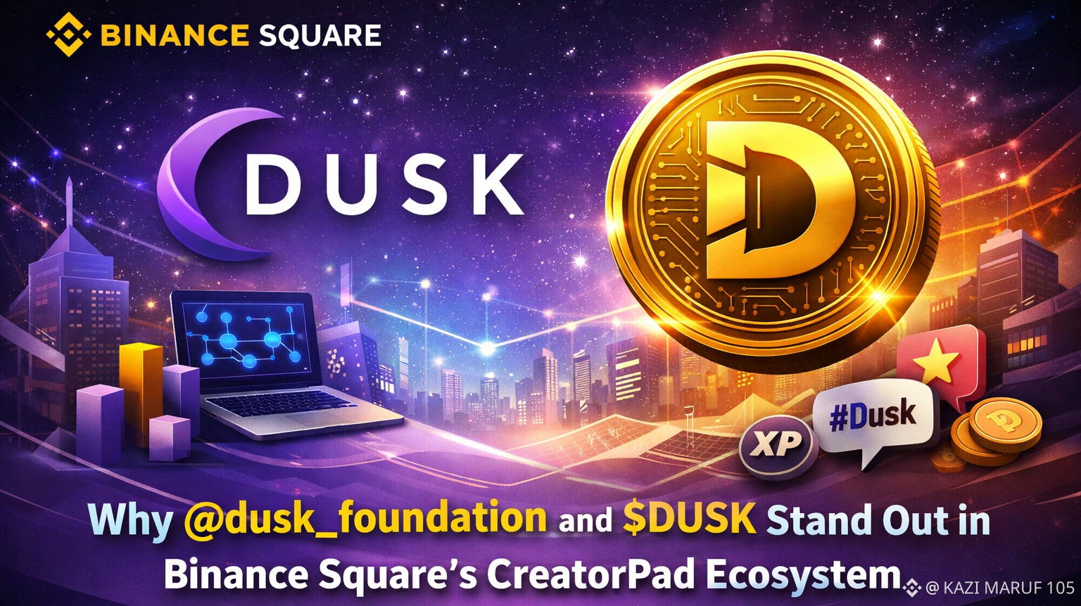 Indem die Vision von @Dusk dusk_foundation hervorgehoben und die Nützlichkeit und Relevanz $DUSK innerhalb der sich entwickelnden Krypto-Erzählung betont wird, tragen die Creator nicht nur zur Sichtbarkeit des Ökosystems bei, sondern helfen auch, Neulinge in diesem Bereich zu schulen. Das CreatorPad von Binance Square stellt ein leistungsstarkes Mittel für lehrreiche, originelle Inhalte dar — und für Projekte wie #Dusk ist es eine Gelegenheit, zu informieren, zu inspirieren und in der globalen Krypto-Diskussion zu wachsen.