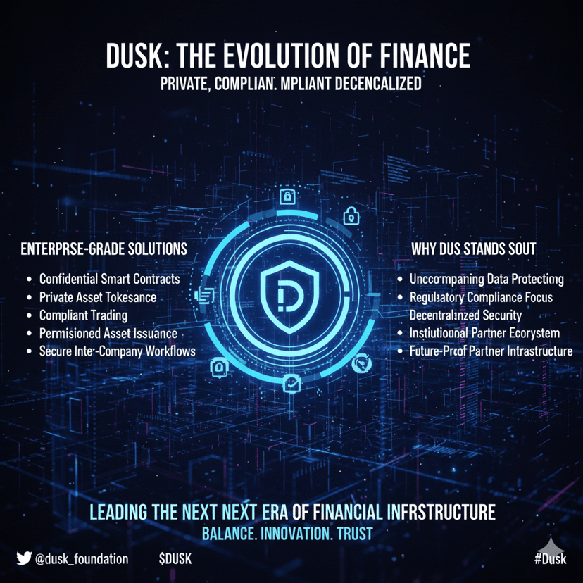 Was ich beeindruckend finde, an #Dusk, ist seine Ausrichtung auf den gesamten Lebenszyklus der regulierten Finanzwelt. Von KYC-fähigen Settlement-Layern bis hin zu Tools für Unternehmen und institutionelle Partner hat Dusk systematisch ein Ökosystem aufgebaut, das mit der Art und Weise übereinstimmt, wie echte Märkte funktionieren. Viele Ketten behaupten, Tokenisierung zu unterstützen, aber wenige bieten die Vertraulichkeit und Compliance-Steuerung, die echte Unternehmen benötigen. Wenn Blockchain die nächste Ära der Finanzinfrastruktur antreiben soll, werden Netzwerke wie Dusk erforderlich sein – Ketten, die Sicherheit, Privatsphäre und regulatorisches Vertrauen ohne Kompromisse bei der Dezentralisierung ausbalancieren. Dusk scheint einzigartig positioniert, diesen Übergang zu führen.