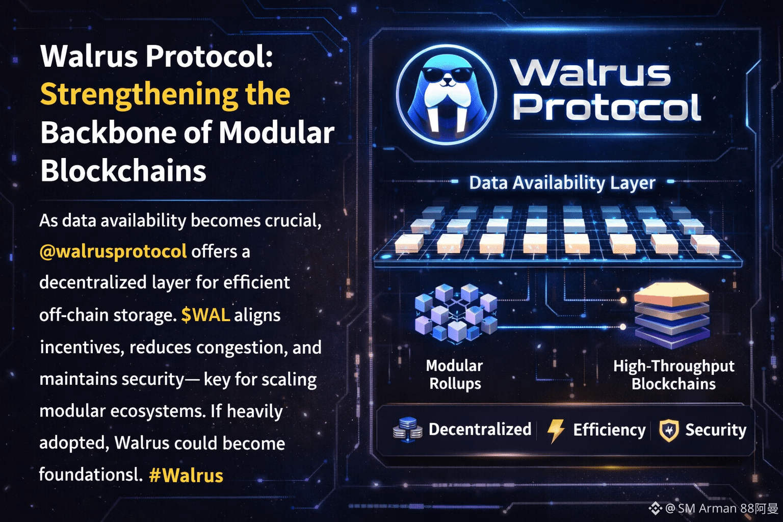 Modular blockchain architecture continues to evolve, data availability has become one of the most critical infrastructure challenges. @walrusprotocol is positioning itself as a key solution by offering a scalable, decentralized data availability layer designed for high-throughput blockchains and rollups. Instead of forcing execution layers to store massive datasets on-chain, Walrus enables efficient offloading of data while preserving accessibility and security.