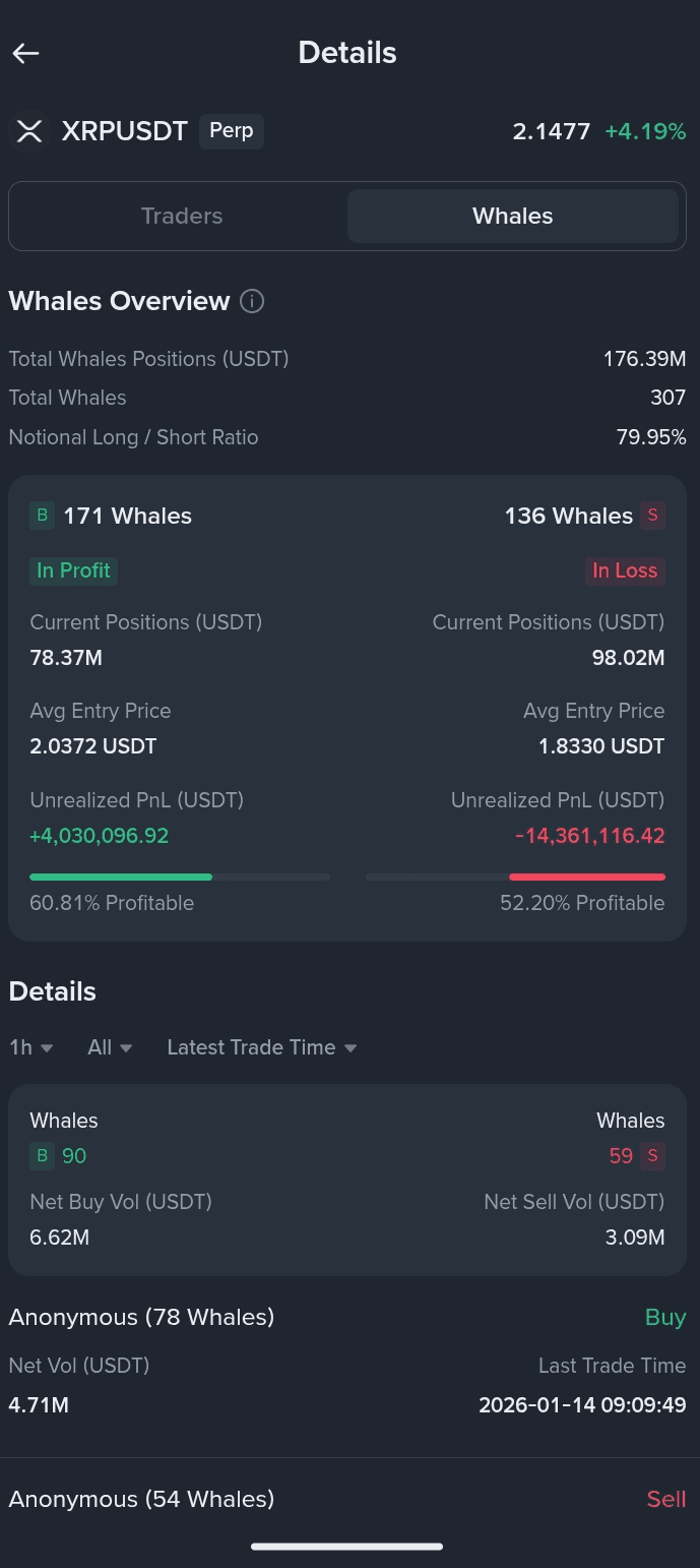 Die meisten Whales setzen auf steigende XRP-Kurse.