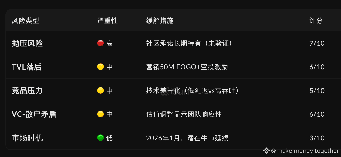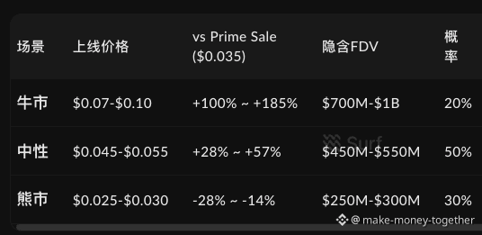 打新价格:Fogo 以$0.035/FOGO($350M FDV)的Prime Sale价格相比预市场$0.05参考价有42%上涨空间,但41% TGE解锁率和VC-公募估值倍差构成显著风险。