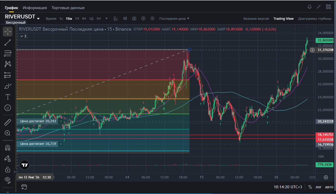 Heute habe ich ein Stück am Fluss #RIVERUSDT abgebissen... Siehe Bilder... beim Rücksetzer vom Maximum.