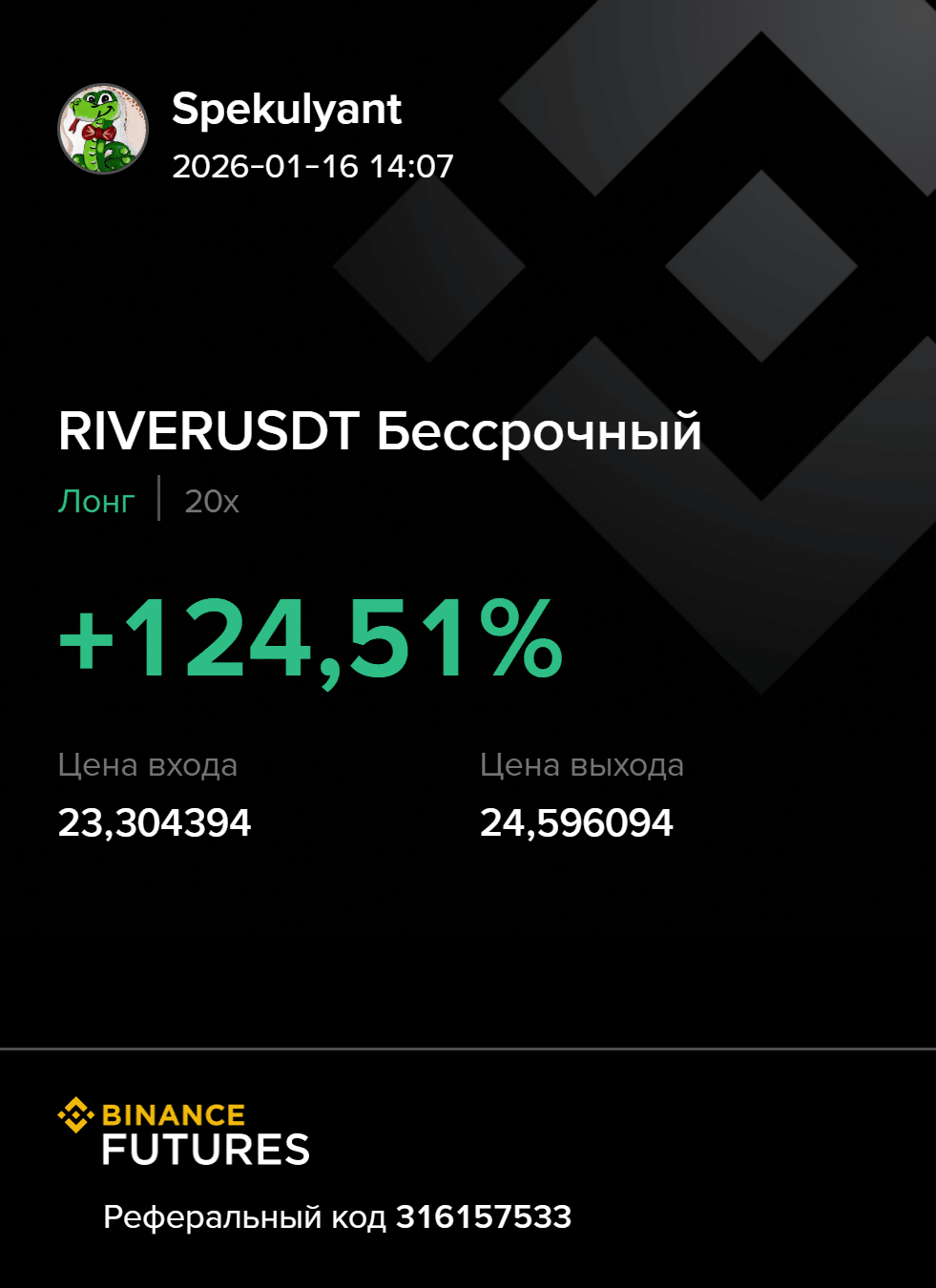 Ich habe die Veröffentlichung Alisa_Trend über Fakes auf Binance gelesen und muss zugeben, dass ich, hätte ich ein Demokonto gehabt, natürlich die Position nicht über Nacht geschlossen hätte, und heute wären es +1000% um 10-00. Ich hätte Ihnen etwas zeigen können ))