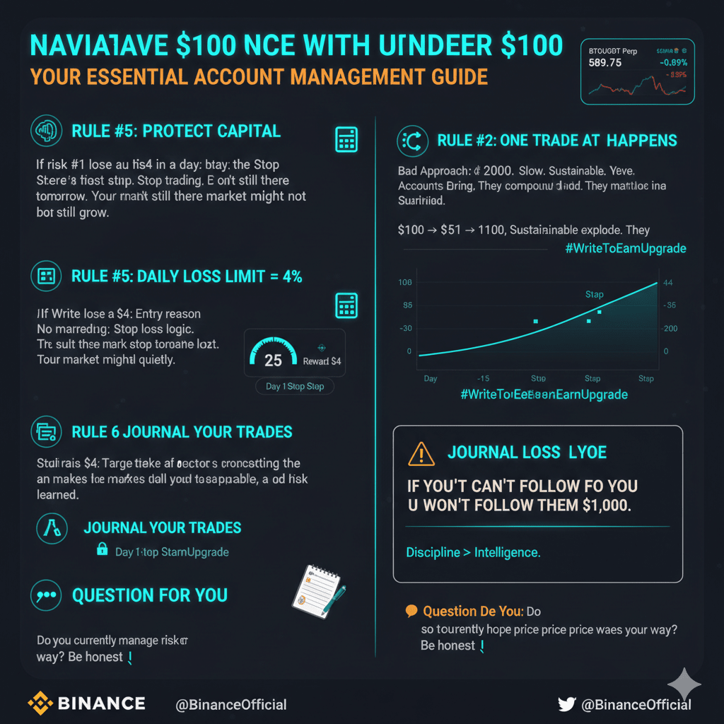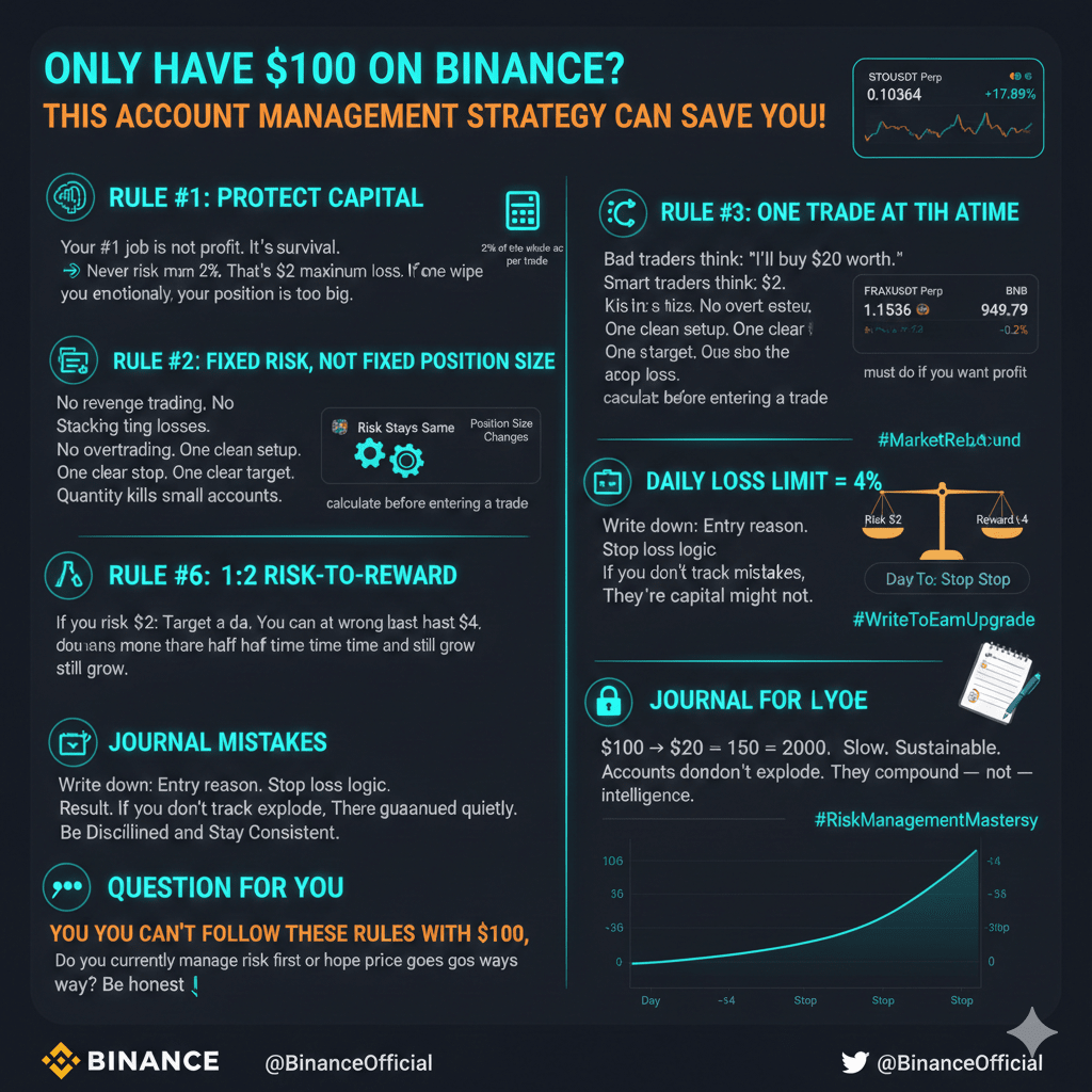 ⚠️ Wichtige Wahrheit: Wenn Sie sich an diese Regeln mit $100 nicht halten können, werden Sie sie mit $1.000 sicherlich nicht befolgen. Der Markt ist ein Spiegel, der Ihre Disziplin widerspiegelt, nicht Ihre Intelligenz.