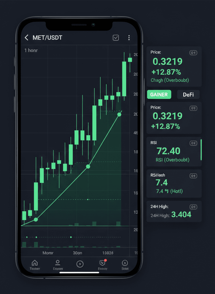 Das MET/USDT-Paar zeigt einen starken bullischen Anstieg im DeFi-Sektor und wird derzeit bei 0,3219 $ gehandelt – ein beeindruckender Anstieg von +12,87 % in den letzten 24 Stunden. Dies platziert es fest im Bereich der #Gainer, unterstützt von einem starken Handelsvolumen von über 15 Millionen USDT. Technisch gesehen wird der Preis deutlich über dem Parabolic SAR-Niveau von 0,2936 $ gehandelt, was eine robuste Aufwärtstrendstruktur bestätigt. Der RSI(6)-Wert von 72,40 weist jedoch auf überkaufte Bedingungen hin, was die Notwendigkeit für eine vorsichtige Beobachtung des Momentums nahelegt. Der MACD bleibt positiv ausgerichtet mit einem bullischen Histogramm, was die kurzfristige Stärke verstärkt. Händler sollten den wichtigen Widerstand bei 0,3404 $ (24-Stunden-Hoch) für einen möglichen Ausbruch beobachten, während 0,2936 $ als kritische Unterstützung des Trends dient. Mit MET, das eine so dynamische Preisdynamik zeigt, bleibt es ein Token, das in den kommenden Sitzungen genau beobachtet werden sollte.