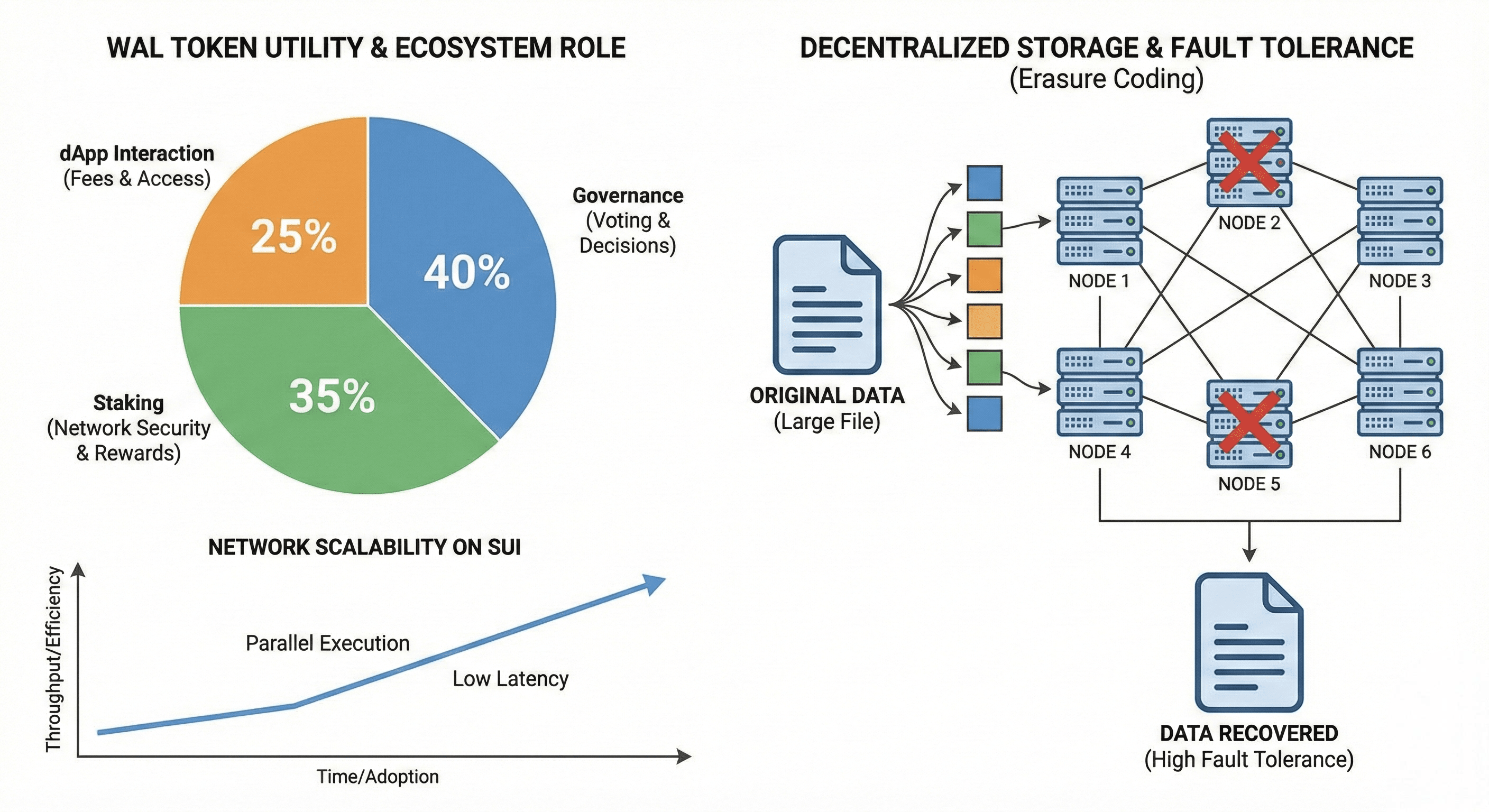 Lass mich diesen Teil einfach erklären. WAL ist der native Token im Walrus-Ökosystem. Nach meinem Verständnis ist WAL nicht nur für Handelszwecke konzipiert. Es spielt eine Rolle in der Governance, beim Staking und bei der Interaktion mit dezentralen Anwendungen, die auf Walrus aufgebaut sind.
