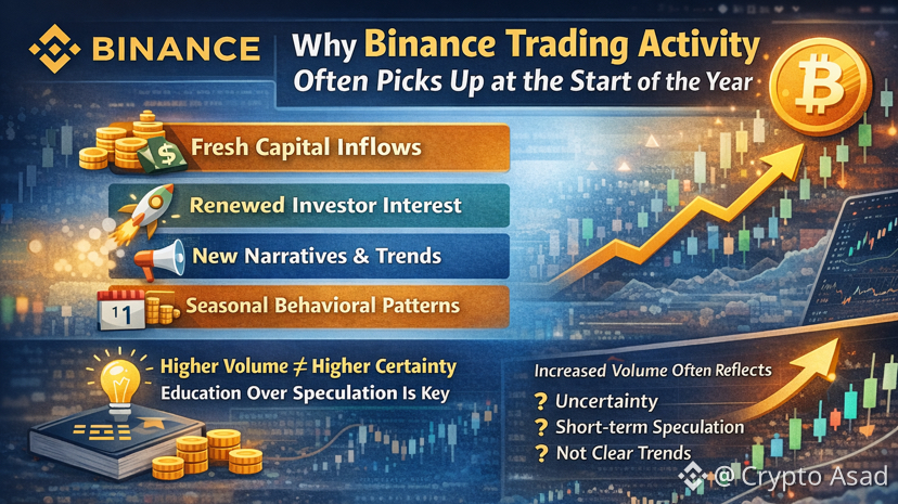 Jedes Jahr, wenn der Januar beginnt, bemerken Krypto-Händler ein vertrautes Muster im Handelsgeschehen an großen Börsen, insbesondere Binance, das oft stark ansteigt. Die Volumina steigen, neue Token sind im Trend und die Marktteilnahme erscheint energischer als in den letzten Wochen des vorherigen Jahres. Während dieser Anstieg wie der Beginn einer großen Rallye erscheinen kann, sind die Gründe dafür nuancierter als einfache Preisoptimismus.