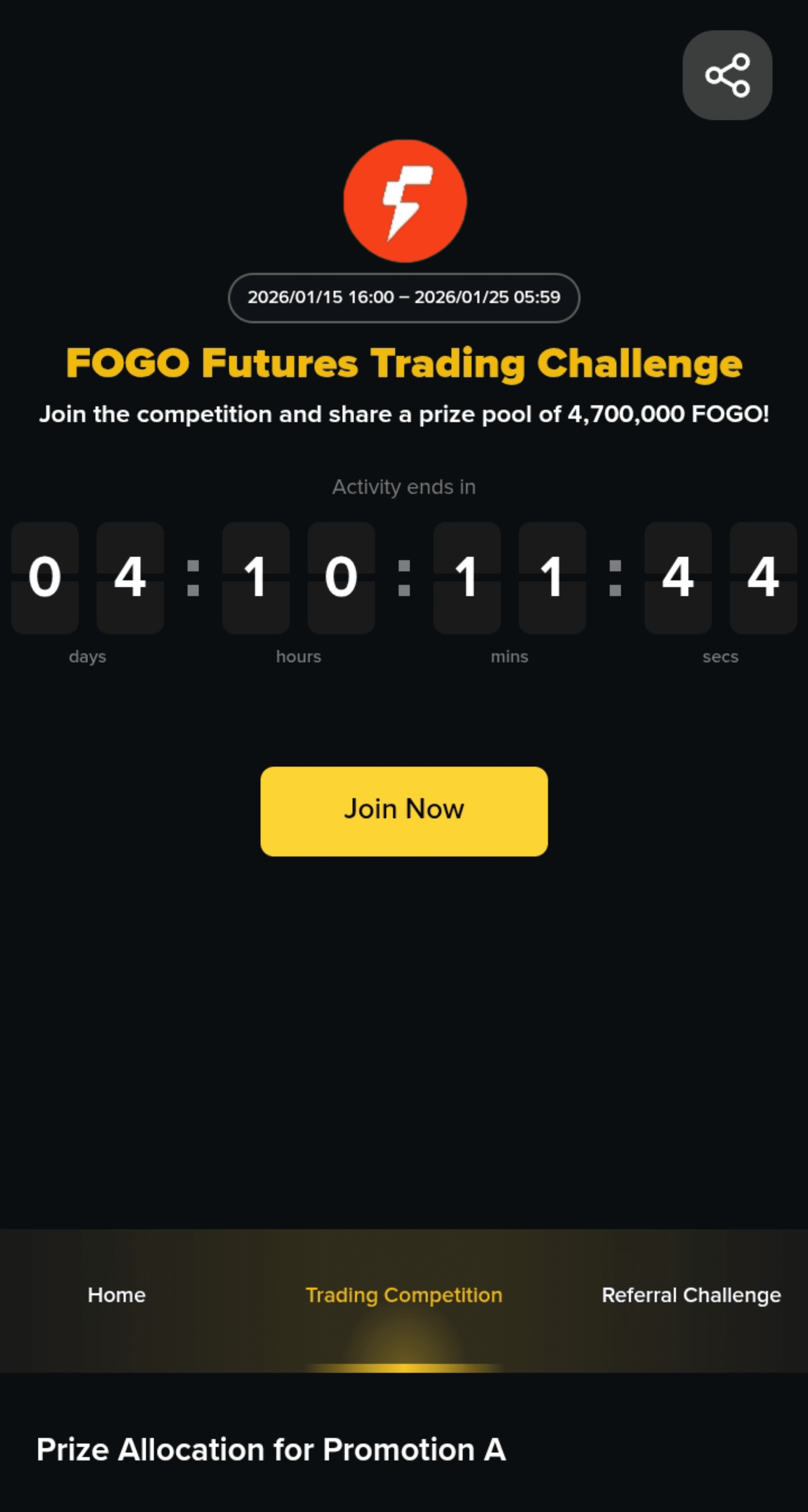 Sind Sie bereit, Ihre Handelsfähigkeiten zu zeigen? Die FOGO Futures Trading Challenge ist offiziell live! Dies ist eine hochriskante Gelegenheit fÃŧr Krypto-Händler, um um einen riesigen Preispool von 4.700.000 FOGO-Token zu konkurrieren.