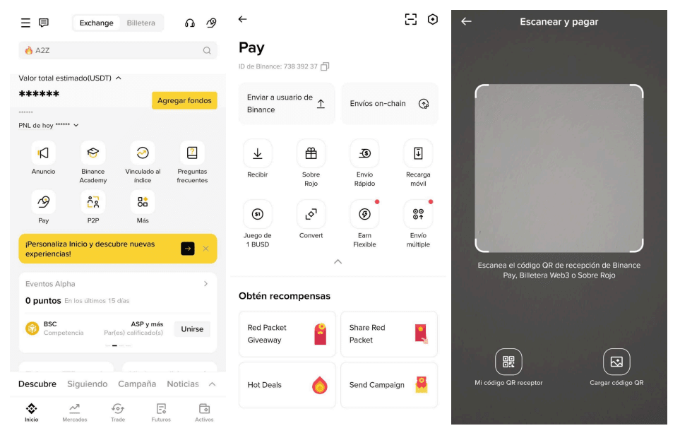 Greife von der Hauptbildschirm auf den Binance Pay-Bereich zu.