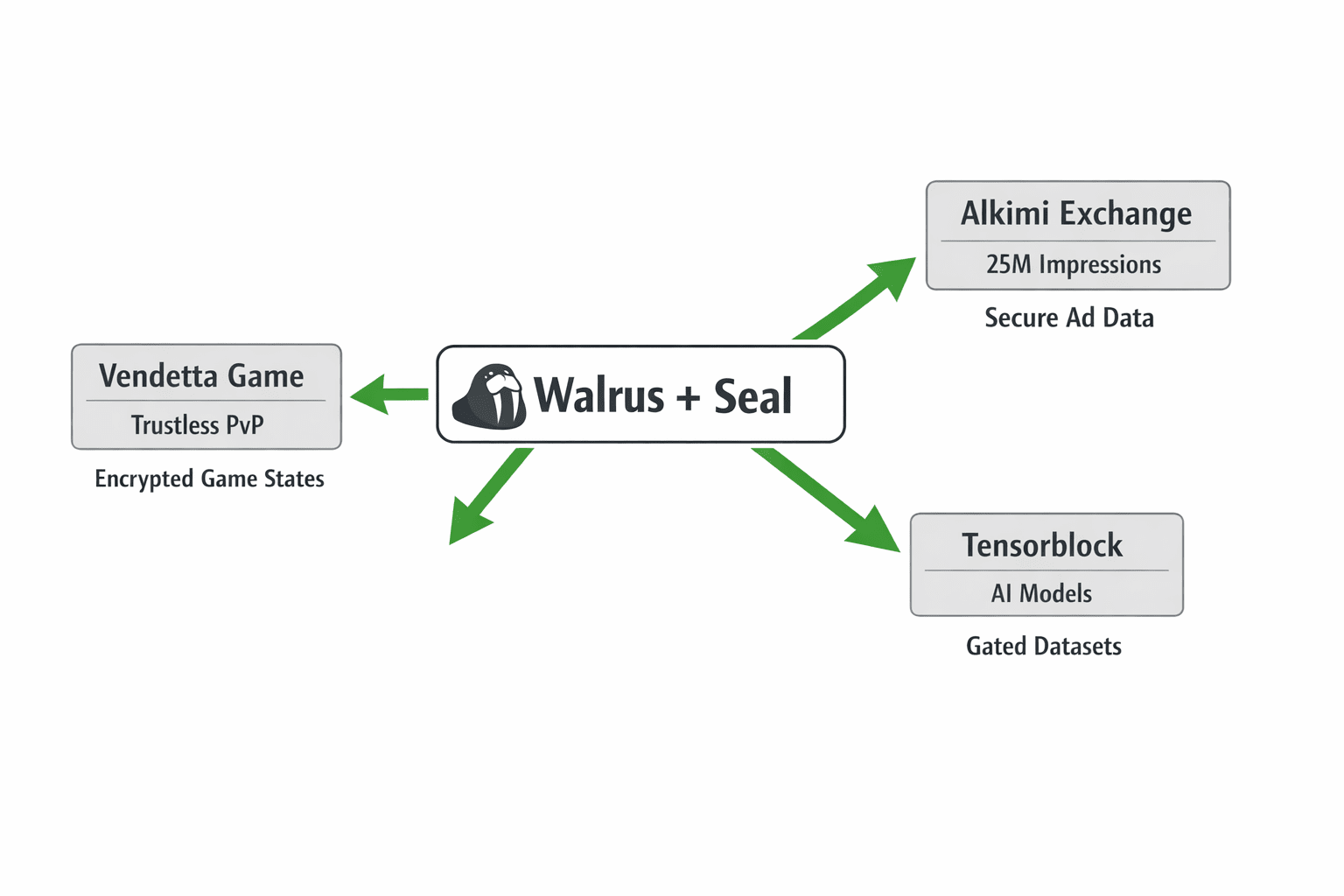 Schauen Sie sich The Vendetta Game an – einen Strategie-Kämpfer, der vollständig on-chain ist. Spielzustände werden verschlüsselt, gespeichert und durch Walrus und Seal verifiziert. Spieler besitzen tatsächlich ihren Fortschritt. Kein Schummeln. Keine Lecks. Nur ehrlicher, vertrauenswürdiger PvP, der skaliert, ohne das Spielbuch von irgendjemandem preiszugeben. Oder sehen Sie sich die tokenisierte Datenplattform von inflectivAI an. Sie schließt hochwertige Datensätze mit Eigentumsregeln ein, sodass die Beitragszahler die Kontrolle behalten, während KI-Agenten mit sauberen Daten trainieren können. Tensorblock führt auch sichere KI-Infrastrukturen durch, indem alles von Modellen über Speicher bis hin zu Logik verschlüsselt wird – nur verifizierte Benutzer oder Agenten erhalten Zugriff, was echte private KI-Operationen bedeutet. Das ist kein Vaporware. Das sind lebende Projekte, die Privatsphäre in ihre geheime Waffe verwandeln.