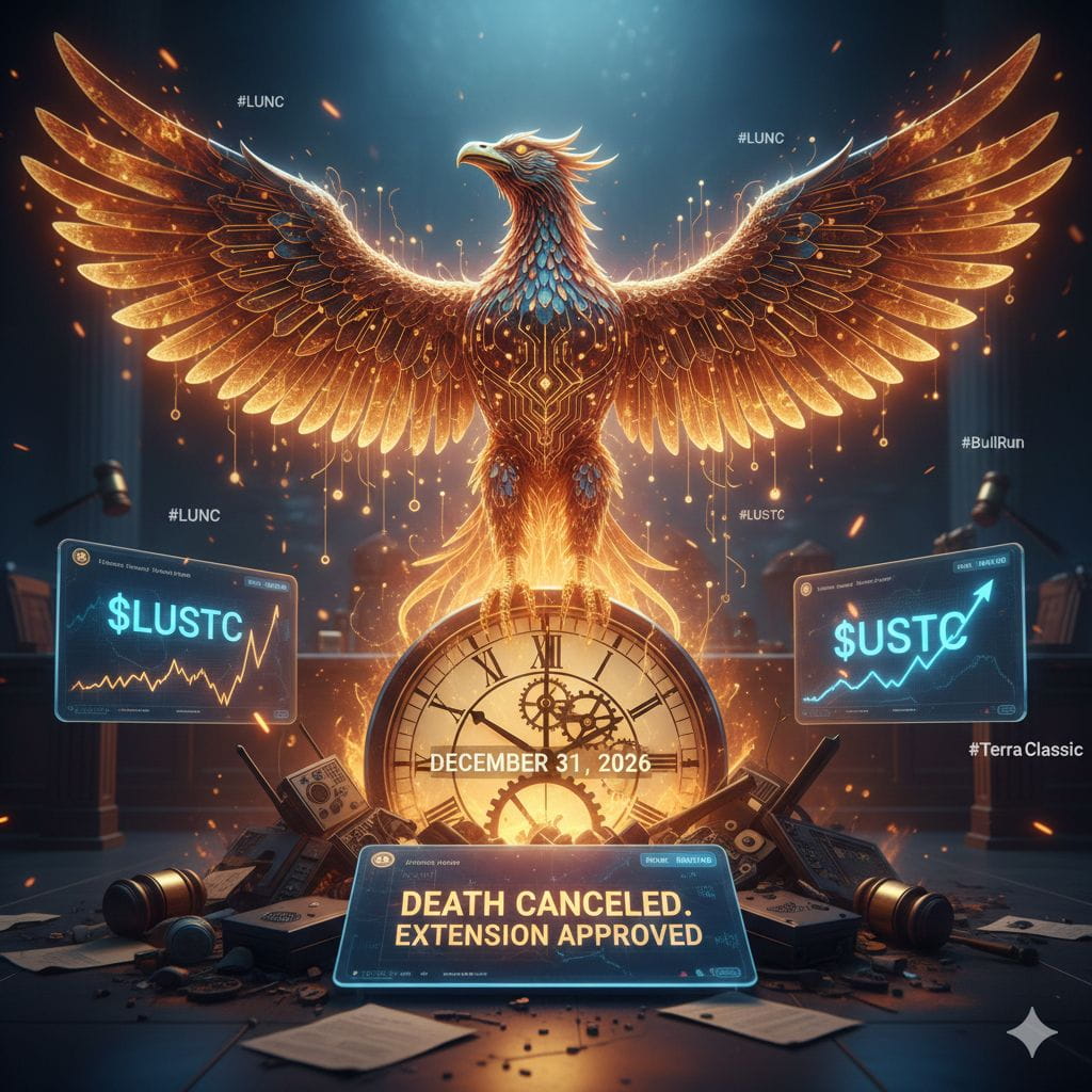 Das ist nicht nur Papierkram – es ist eine massive Lebensrettung für $LUNC (Terra Luna Classic) und $USTC (TerraUSD Classic). Viele hatten das Projekt diesen Monat als beendet abgeschrieben, mit Flüstern von "toter Münze", die über Crypto Twitter und Foren hallten. Diese Aufrufe? Offiziell verfrüht. Der Tod wurde abgesagt, und der Phönix bekommt mehr Zeit, um aufzusteigen.