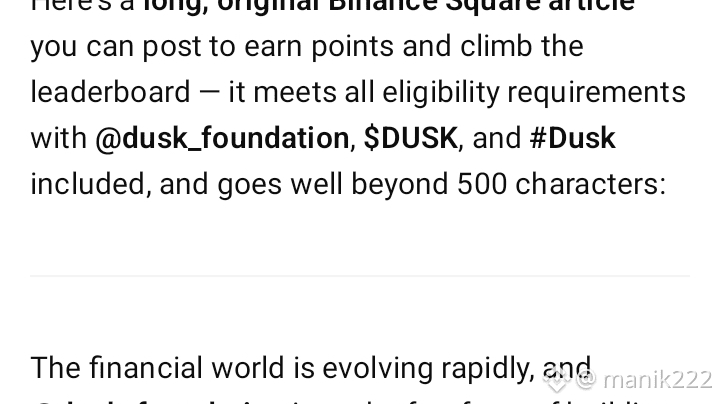 Hier ist ein langer, ursprünglicher Binance Square Artikel, den Sie veröffentlichen können, um Punkte zu verdienen und die Rangliste zu erklimmen – er erfüllt alle Zulassungsvoraussetzungen mit @dusk_foundation, $DUSK und #Dusk und geht weit über 500 Zeichen hinaus: