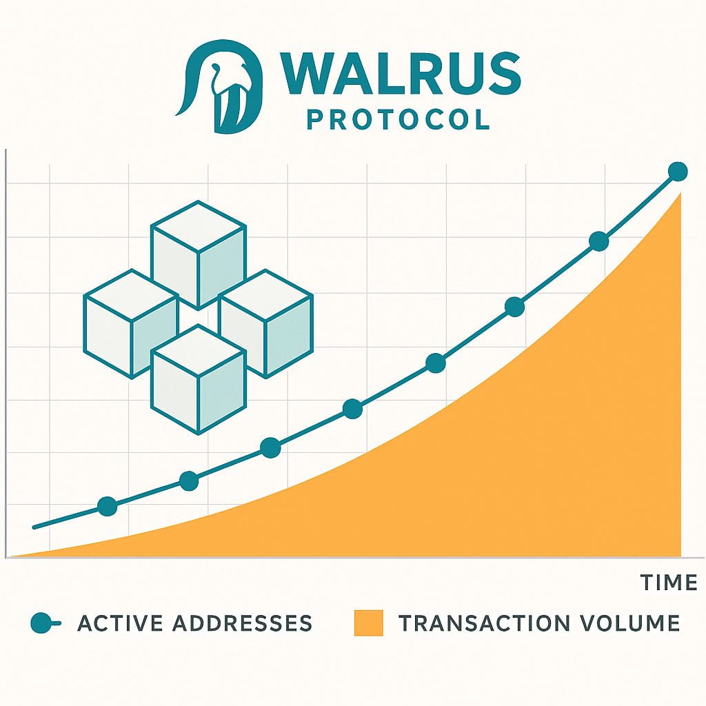 The chart illustrates a steady increase in active addresses and transaction volume within the Walrus Protocol network over recent months. This upward trend reflects growing adoption, rising developer interest, and increasing demand for decentralized data solutions in the Web3 ecosystem.