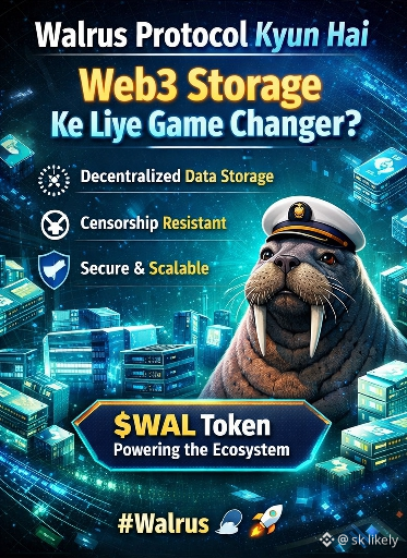 Web3 ecosystem rapidly grow kar raha hai, lekin ek major problem abhi tak properly solve nahi hui — decentralized data storage. Yahin par @walrusprotocol apni value prove karta hai. Walrus Protocol ko specially is liye design kiya gaya hai ke Web3 apps apna data secure, censorship-resistant aur scalable way mein store kar saken.