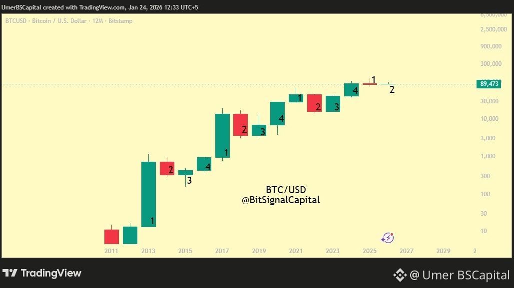 Basierend auf der historischen Struktur: • 2026 → Verteilung & kontrollierte bärische Phase