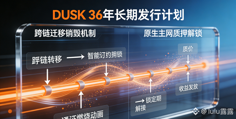 我还仔细研究过DUSK的发行模型和跨链迁移机制,发现这两个设计让DUSK的通证经济具备了极强的可持续性,让代币的发行和销毁都与网络的技术落地深度绑定。DUSK采用的是36年的长期发行计划,每四年进行一次周期性减量,总供应量上限为10亿枚,截至2026年1月,流通量约4.87亿枚,这个发行模型的核心,是让DUSK的通胀始终和网络的技术落地、实际效用挂钩,而非按固定的时间增发。初期网络交易量不足时,新发行的DUSK主要用于区块奖励,激励节点参与共识和验证,随着网络的成熟,尤其是合规资产代币化和MiCA合规支付通道的落地,Gas费的需求会逐步提升,节点的奖励会慢慢从新铸代币转向Gas费分成,最终实现网络效用驱动代币需求的良性循环。而且DUSK的初始代币分配中,发展基金的代币解锁完全和技术开发里程碑挂钩,比如Zedger框架的落地、Lightspeed L2的上线、MiCA合规支付通道的完成,都会解锁相应的发展基金代币,不会出现团队和投资机构的无意义解锁,避免了市场抛压。DUSK最初是以ERC-20标准发行在以太坊网络上,而在原生主网上线后,项目方推出了独特的跨链迁移销毁机制,我研究过这个机制的代码,发现每将1枚ERC-20标准的DUSK迁移至原生主网,就会销毁0.1枚,而且迁移的过程需要质押一定数量的原生DUSK作为手续费,这一设计既促进了原生主网的代币流通,又通过销毁减少了以太坊网络上的供应,截至2026年1月,已有约32%的DUSK完成了原生主网迁移,累计销毁超1800万枚。更重要的是,跨链迁移的解锁时间和用户在原生主网的质押时长挂钩,质押时间越长,解锁速度越快,这就让用户更愿意在原生主网持有和质押DUSK,提升了原生主网的代币锁定率。