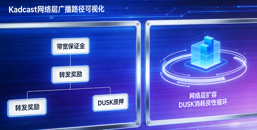 Die Kadcast-Netzwerkschicht als innovative Gestaltung von Dusk zur Ersetzung traditioneller Gerüchteprotokolle läuft effizient und skalierbar, unterstützt von DUSK als nativen Token. Das ist auch der Grund, warum ich denke, dass das Design von DUSK so detailliert ist. Es erweitert die Rolle des Tokens auf die Netzwerkschicht, indem es den Verbrauch und die Belohnungen der Tokens tief mit der Bandbreite, Effizienz und Stabilität des Netzwerks verknüpft. Ich habe im Testnetz Effizienztests für die Broadcasting-Effizienz der Kadcast-Netzwerkschicht durchgeführt. Im Vergleich zu traditionellen Gerüchteprotokollen kann Kadcast durch deterministische Multicast-Pfade im Kademlia-Stil die Bandbreitennutzung um 25 % bis 50 % reduzieren. Um sich in dieser Netzwerkschicht als Knoten zu integrieren, muss man zunächst eine bestimmte Menge DUSK als Bandbreite-Einlage staken. Je stabiler die Up- und Downstream-Bandbreite des Knotens und je niedriger die Paketverlustquote, desto mehr DUSK-Belohnungen erhält man. Zum Beispiel erhält ein Knoten mit einer Paketverlustquote von unter 0,5 % und einer Bandbreite von über 500 Mbps DUSK-Belohnungen, die dreimal so hoch sind wie die eines Knotens mit einer Paketverlustquote von 5 %. Dieses Design motiviert die Knoten, ihre Hardware aktiv zu optimieren und die Gesamtbroadcast-Effizienz des Netzwerks zu steigern. Darüber hinaus erhält jeder Knoten in der Kadcast-Netzwerkschicht, der erfolgreich einen Block, eine Wahl oder eine Transaktionsnachricht weiterleitet, eine kleine Menge DUSK als Belohnung. Die Höhe der Belohnung hängt von der Timeliness und Genauigkeit der Weiterleitung ab. Wenn ein Knoten Verzögerungen oder falsche Weiterleitungen hat, verliert er nicht nur die Belohnung, sondern es werden auch Teile des gestakten DUSK abgezogen. Dies führt dazu, dass die Knoten mehr auf die Qualität der Weiterleitung achten und die Nachrichtenverbreitung in der gesamten Netzwerkschicht effizienter und zuverlässiger wird. Sogar die Skalierung der Kadcast-Netzwerkschicht erfordert den Verbrauch von DUSK zur Bereitstellung neuer Routing-Knoten. Der Umfang der Skalierung ist direkt mit der Menge an verbrauchtem DUSK verbunden. Wenn man beispielsweise die Transaktionsdurchsatzrate des Netzwerks verdoppeln möchte, muss eine entsprechende Menge DUSK konsumiert werden, um neue Routing-Knoten bereitzustellen. Dieser konsumierte DUSK wird jedoch nicht direkt verbrannt, sondern wird als Belohnung an die technischen Entwicklungsknoten verteilt, die an der Skalierung teilnehmen. Dies macht den Verbrauch von DUSK zu einem technischen Antrieb für die Skalierung der Netzwerkschicht und schafft einen positiven Kreislauf für die gesamte Entwicklung des Netzwerks: „Tokenverbrauch - technische Skalierung - Netzwerkeffizienzsteigerung - Tokenbedarfserhöhung“.