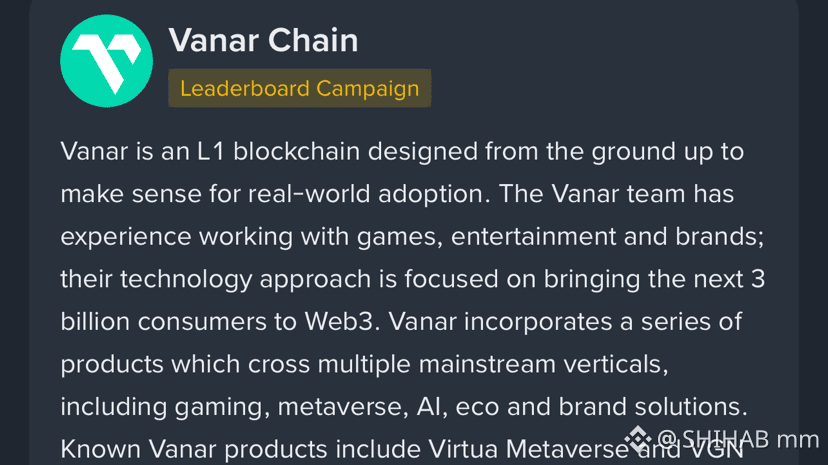 #vanar $VANRY Vanar ist eine L1-Blockchain, die von Grund auf so konzipiert wurde, dass sie für die reale Welt sinnvoll ist. Das Vanar-Team hat Erfahrung in der Zusammenarbeit mit Spielen, Unterhaltung und Marken; ihr technologischer Ansatz konzentriert sich darauf, die nächsten 3 Milliarden Verbraucher zu Web3 zu bringen. Vanar umfasst eine Reihe von Produkten, die mehrere gängige vertikale Märkte durchqueren, darunter Gaming, Metaverse, KI, Ökologie und Markenlösungen.
