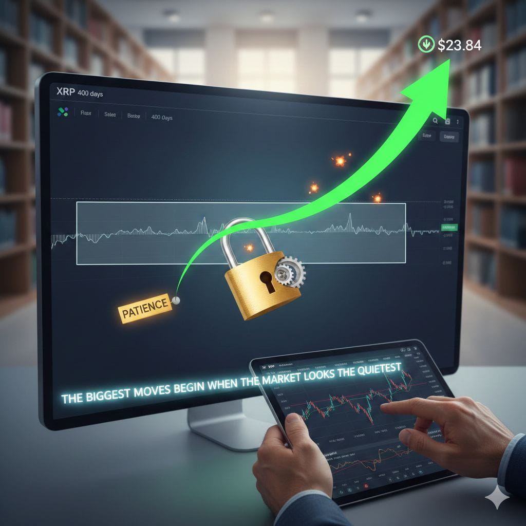In crypto markets, noise usually grabs attention â big green candles, hype, and sudden breakouts đ. But seasoned traders know a different truth: the quiet phases often matter the most. XRP has now spent nearly 400 days moving sideways inside a tight range, and that kind of silence is rarely meaningless.