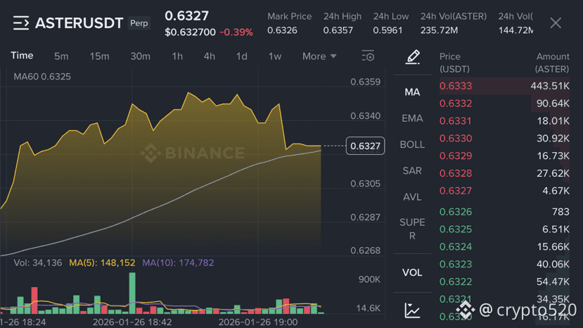 ASTER/USDT traders ke radar par is liye hai kyun ke ye token decentralized perpetual trading ke fast-growing segment se belong karta hai. Recent price action consolidation show kar rahi hai, jo aksar strong move se pehle dekhi jati hai.
