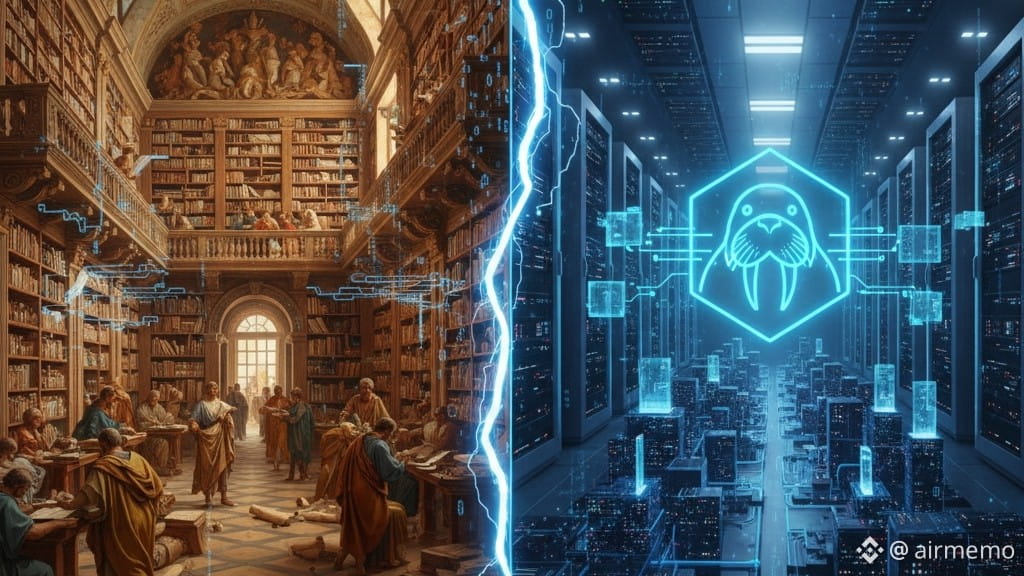 Die Geschichte lehrt uns, dass die große Bibliothek von Alexandria der Höhepunkt menschlichen Wissens war, ein Ort, an dem jede Schriftrolle ein Schatz der Zivilisation war. Ihr Zerstörung bewies jedoch, dass zentrale Speicherung anfällig für Zeit und Katastrophen ist. Heute erleben wir die Geburt eines digitalen Nachfolgers, der nicht verbrannt oder verloren gehen kann: @Walrus 🦭/acc .