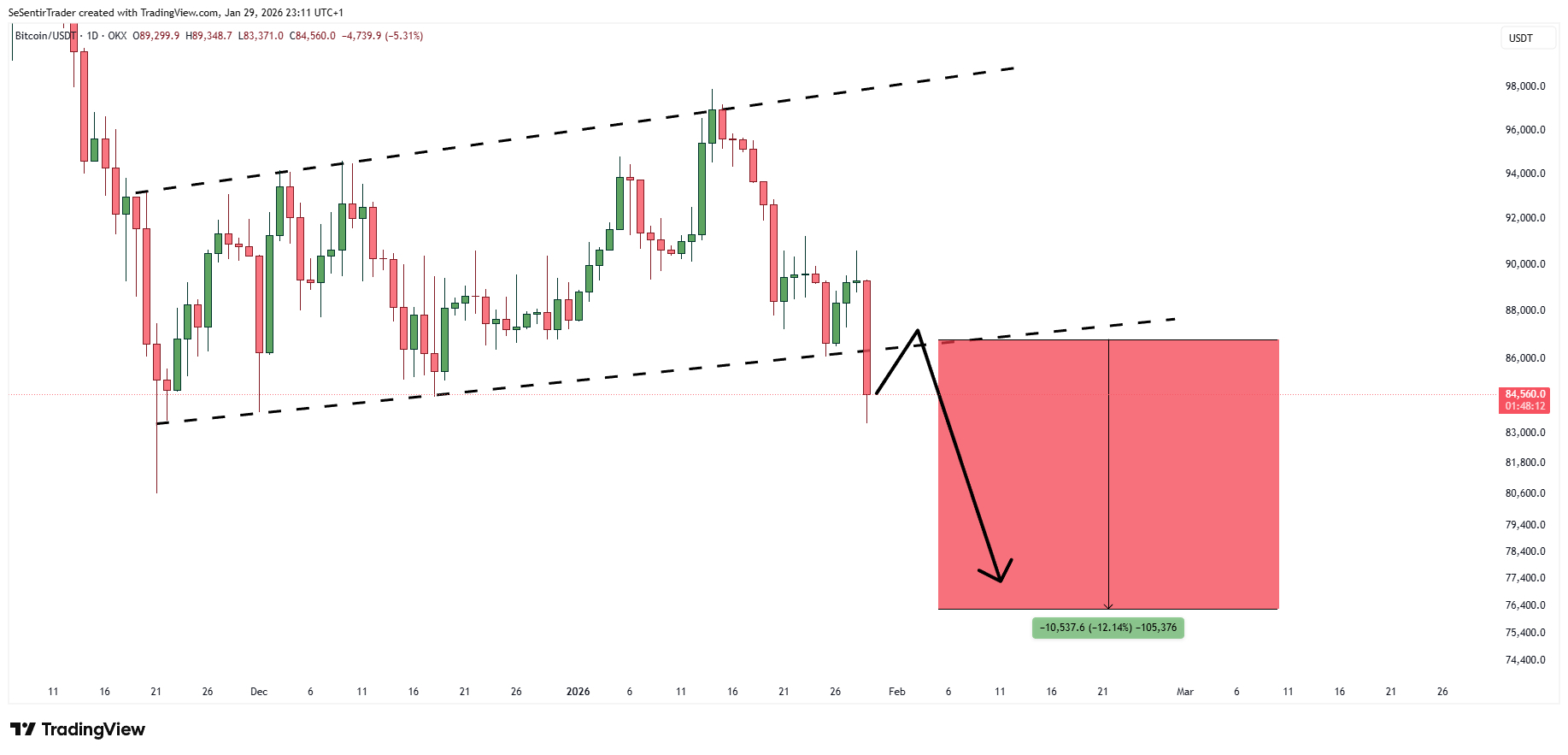 Deshalb bleibt nach jedem potenziellen Erholungsanstieg eine tiefere Bewegung in Richtung $75,000 ein Szenario mit hoher Wahrscheinlichkeit.