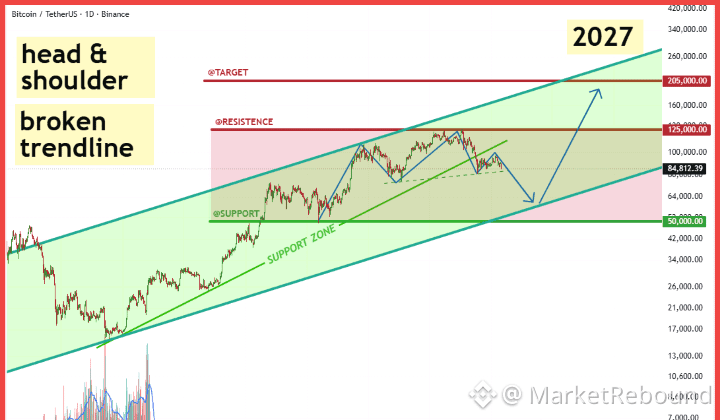 Please BTC ke sath extra cautious raho. Chart ka structure clear danger signal de raha hai aur short–mid term mein strong downside risk nazar aa raha hai.