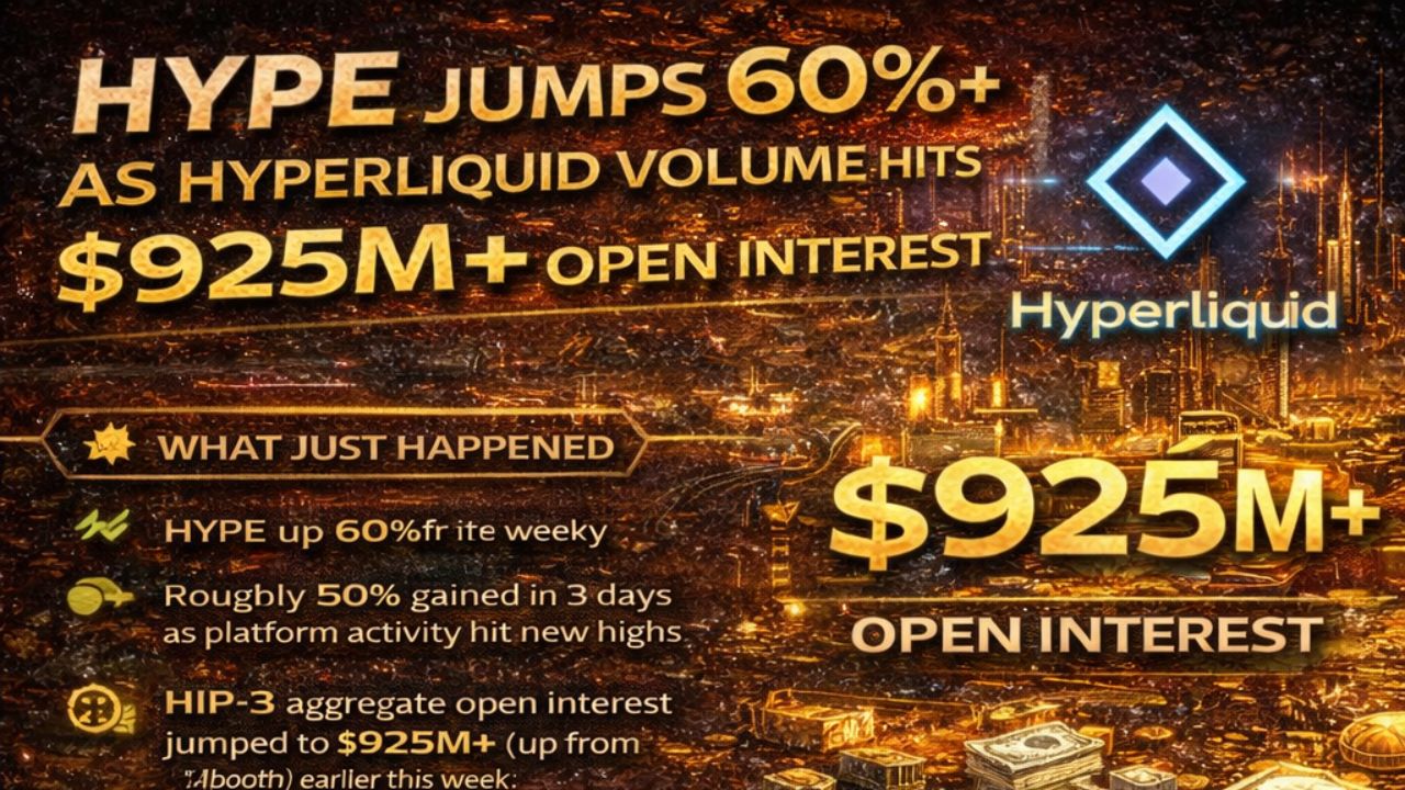 🚀 Ich bin Storiesofcoins — HYPE ist in einer Woche um über 60% gestiegen, während die HIP-3-Märkte von Hyperliquid einen neuen Rekord von über 925 Millionen Dollar an Offeninteresse aufgestellt haben. So sieht eine von Derivaten getriebene Rallye in Echtzeit aus. (CoinMarketCap)