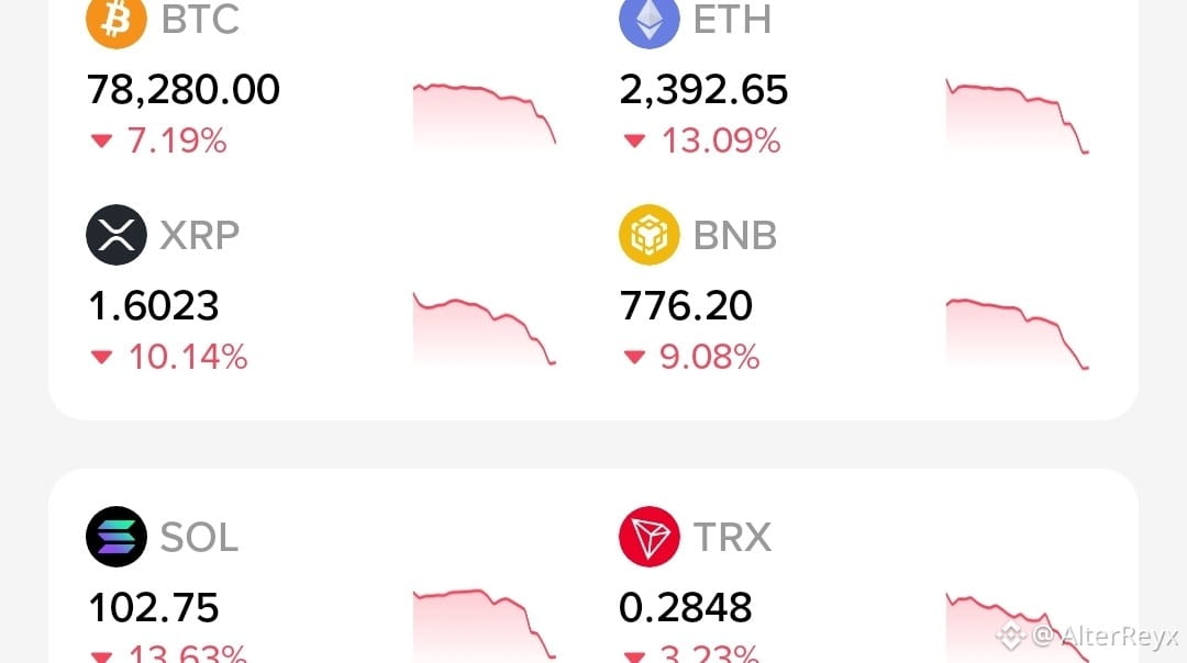 Bitcoin$BTC , Ethereum$ETH , Solana $SOL , $XRP und bedeutende Altcoins durchbrechen wichtige Unterstützungsniveaus. Solana und andere hoch-beta Vermögenswerte schneiden schlechter ab, während Hebel über das gesamte Spektrum abgebaut werden.