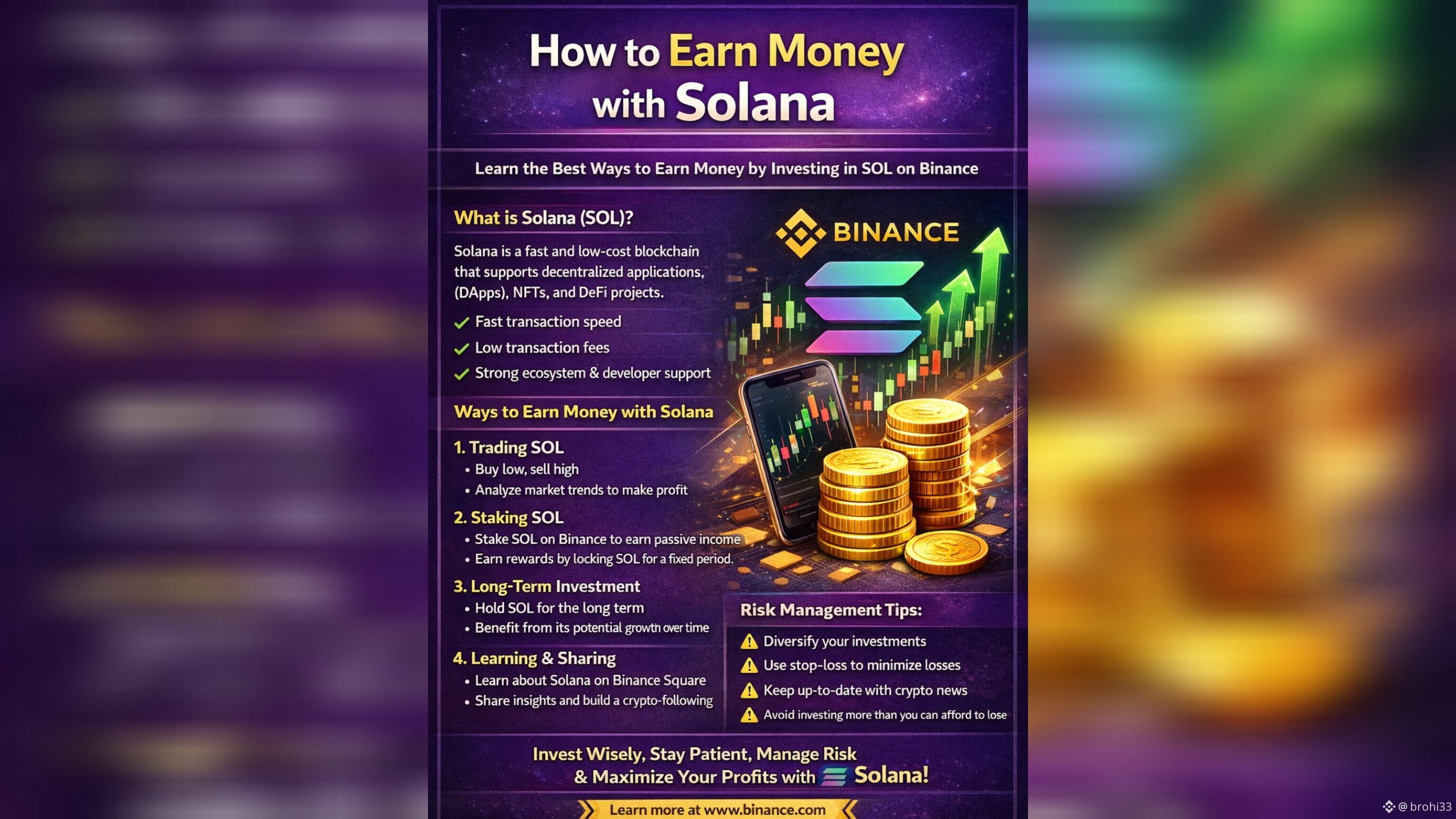 Suchen Sie nach einer intelligenten Möglichkeit, Geld mit Kryptowährungen zu verdienen? Solana (SOL) ist eines der am schnellsten wachsenden Blockchain-Projekte und hat sich zu einem Favoriten unter Investoren und Händlern entwickelt. Mit seiner hohen Geschwindigkeit, geringen Transaktionsgebühren und einem starken Ökosystem bietet Solana zahlreiche Verdienstmöglichkeiten—insbesondere wenn es über Binance genutzt wird. In diesem Artikel erfahren Sie einfache und praktische Möglichkeiten, mit Solana Geld zu verdienen, selbst wenn Sie ein Anfänger sind.