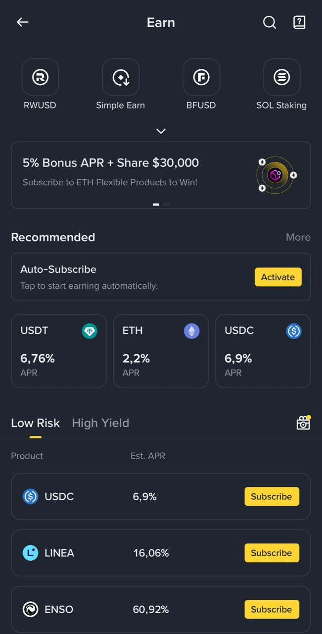 Flexibles Earn: niedrige Rendite, volle Liquidität