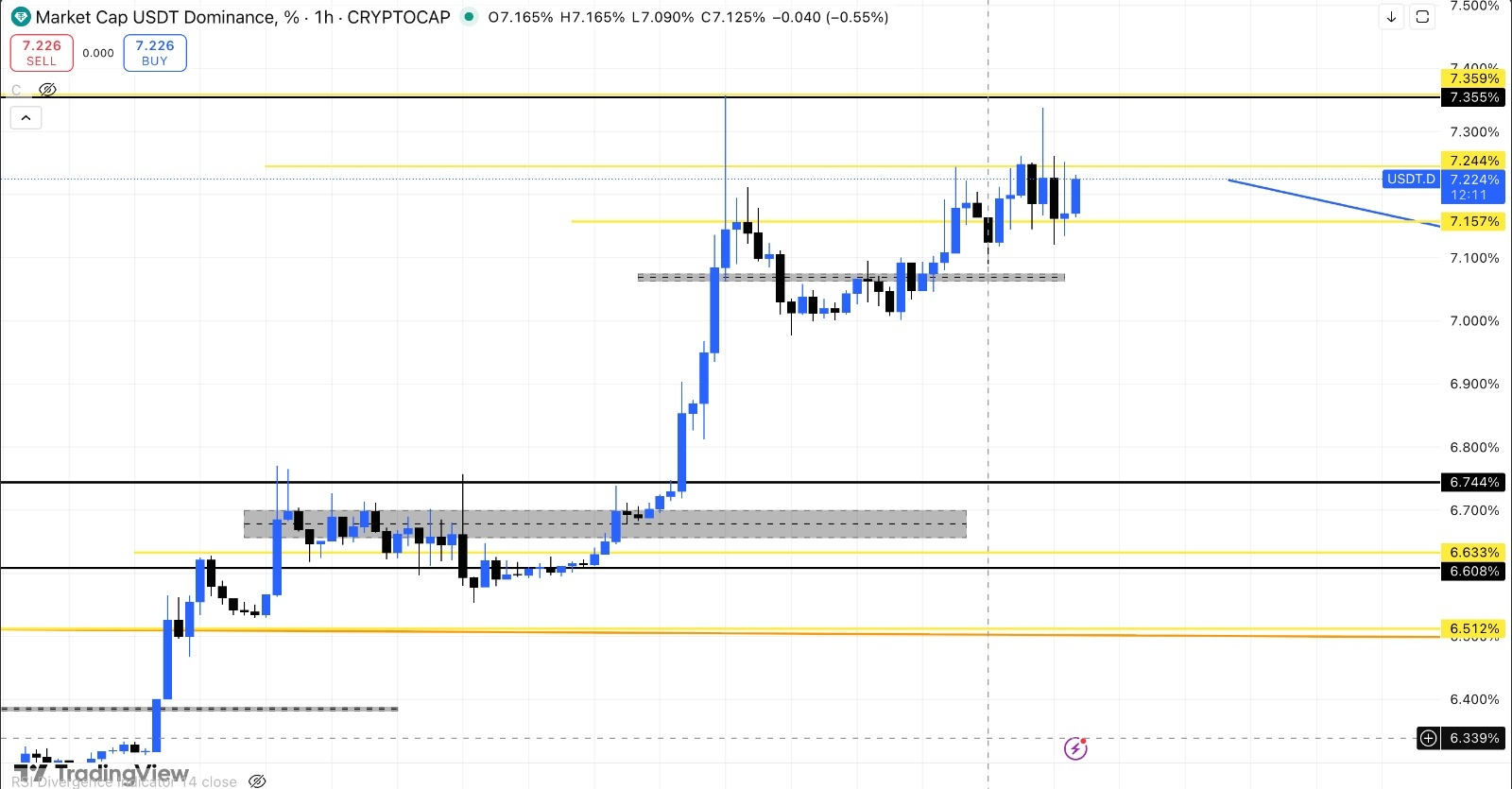 •Was passiert, wenn USDT.D stagniert oder zurückgewiesen wird? Rotation in Risiko.
