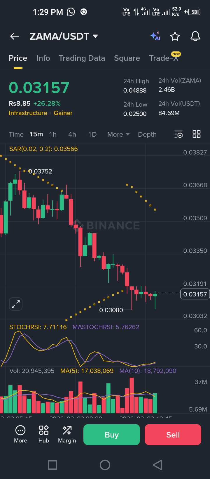 ZAMA stieg aufgrund eines **starken überverkauften Rückpralls aus der Nachfrage, SAR-basierter Momentum-Verschiebung, stabiler Volumenstruktur und Rotation im Infrastruktursektor**.