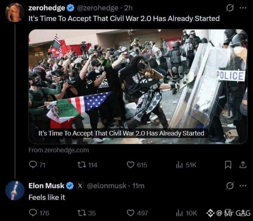 Новая гражданская война в Соединенных Штатах уже началась, считает миллиардер Илон Маск.