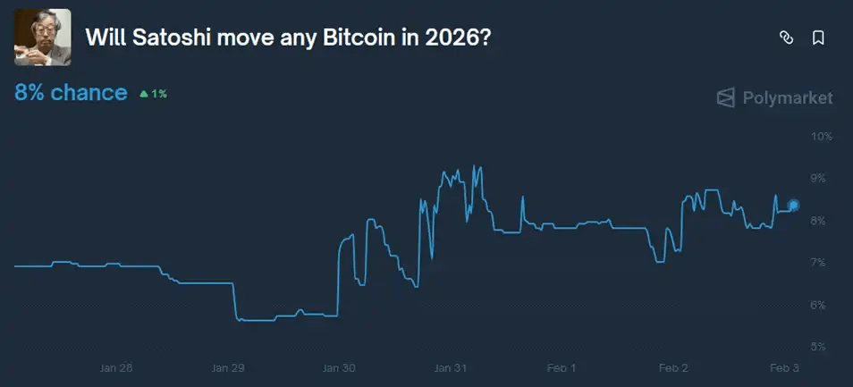 Im Jahr 2026 wurden mehr Krypto-Persönlichkeiten enthüllt, die mit Epstein auf Partys waren, und die Wahrscheinlichkeit, dass „Satoshis Bitcoin-Adresse im Jahr 2026 aktiv wird“, stieg von etwa 6 % auf etwa 9,3 %.