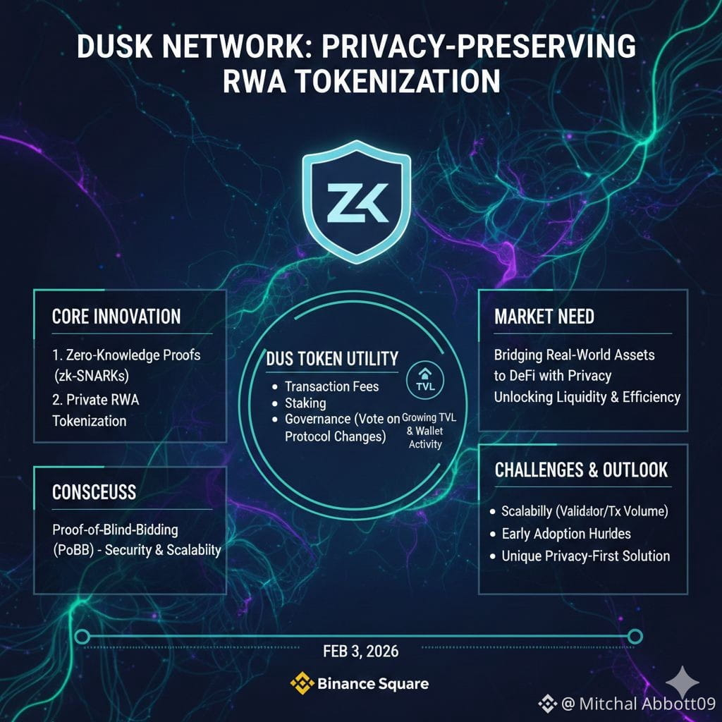 @Dusk differentiates itself by using advanced privacy-preserving technologies, particularly zero-knowledge proofs (zk-SNARKs), to secure transactions. This allows RWAs to be tokenized and traded on its blockchain without revealing private data. The network operates on a unique Proof-of-Blind-Bidding (PoBB) consensus mechanism, which not only enhances security but also ensures scalability, making it suitable for high-value asset tokenization.