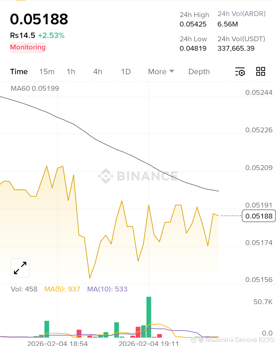 #ARDR price has been muted and range-bound because overall trading activity is low and technical indicators show neutral momentum, so big swings aren’t happening. Exchanges also temporarily paused deposits/withdrawals for a network hard fork, reducing short-term liquidity and dampening volatility ahead of the upgrade. Market sentiment for altcoins remains cautious, which keeps price action tight instead of trending strongly up or down. This makes the candle chart look sideways with smaller movements.