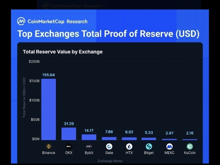 Binance leads mainstream crypto exchanges with ~$155.64 billion in total reserves (as per CoinMarketCap's report released Feb 4, 2026). Stablecoins make up ~$47.47B (30.5%), and Bitcoin anchors ~$49.84B. This highlights strong liquidity, user trust, and resilience amid market volatility. No major user exodus despite ongoing FUD—on-chain data shows stable reserves.