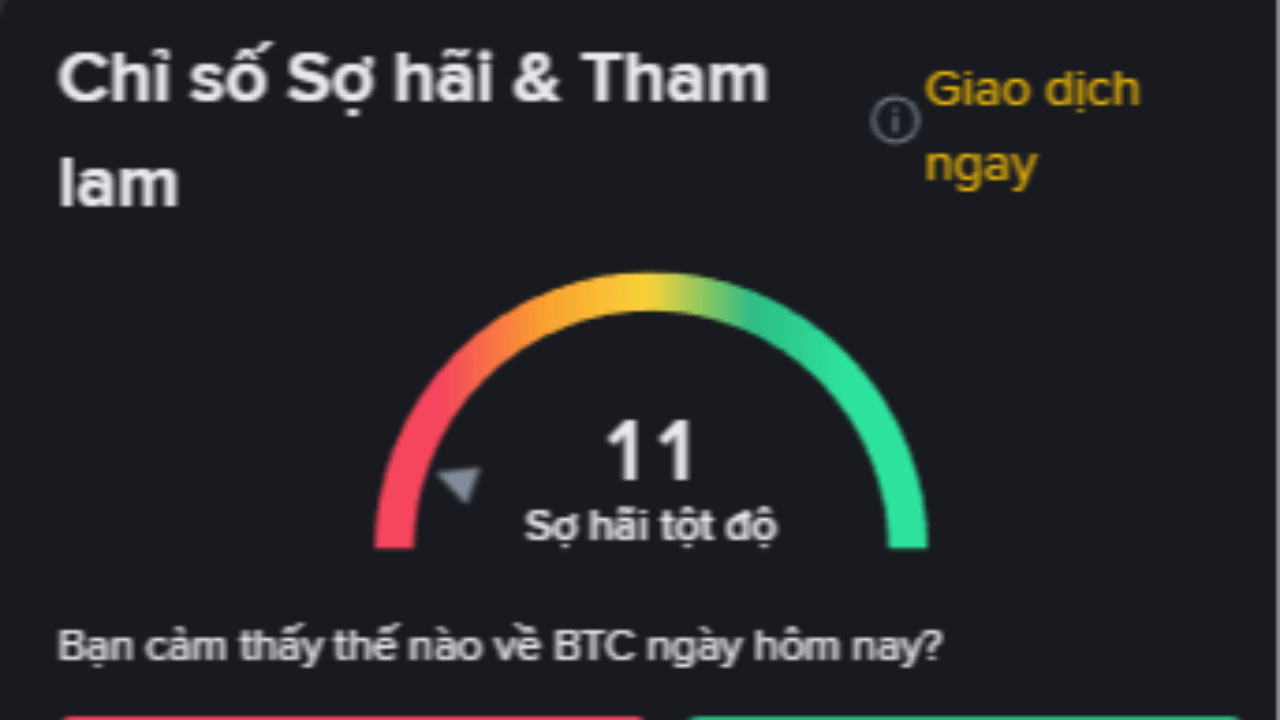 👉 Marktpsychologie: Der Fear & Greed Index ist auf extremem Angstniveau (Extreme Fear) (~11).