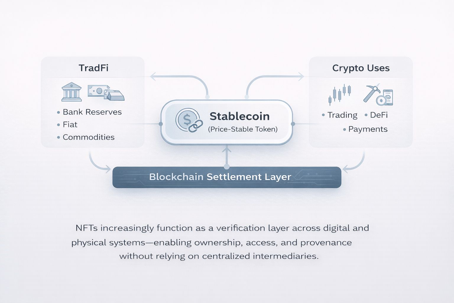● Stablecoins also play a growing role in tokenized real-world assets, including treasury bills and corporate instruments, where price stability is critical.
