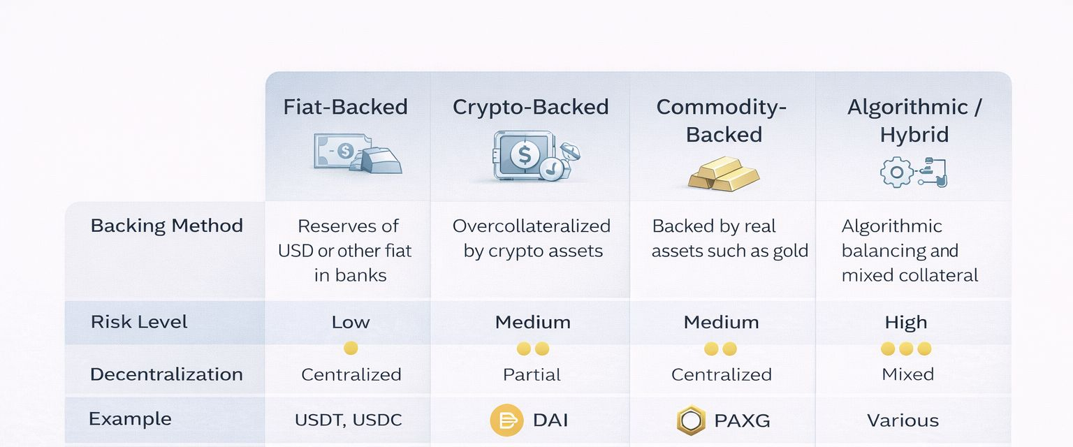 Stablecoins are not all built the same. Their design determines both their reliability and their risk profile.