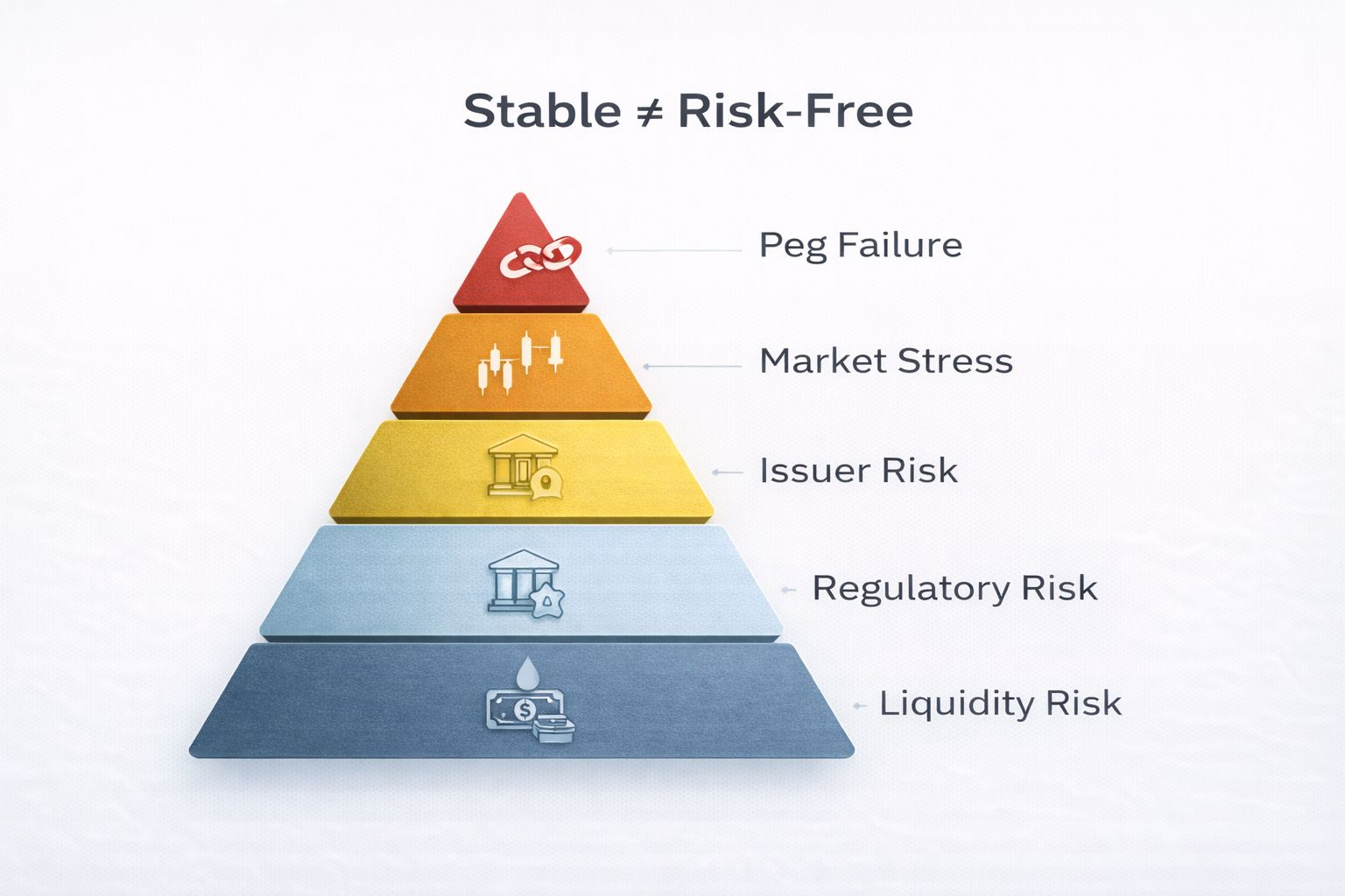 📍Peg stability can fail, particularly in algorithmic models or during market stress.