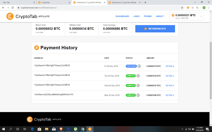 Empfehlungsprogramm: Benutzer können zusätzliches Einkommen erzielen, indem sie andere an CryptoTab verweisen und einen Prozentsatz der Mining-Einnahmen aus ihren Empfehlungen erhalten. Ein Benutzer kann durch Empfehlungen eine ansehnliche Summe Geld verdienen. Es ist der schnellste Weg, Geld zu verdienen.