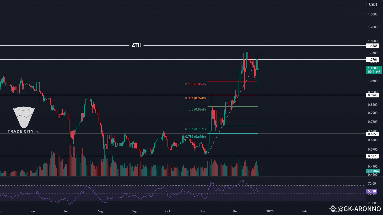 🔽 Further support zones include the 0.5 Fibonacci level at $0.83 and the range between 0.707 and 0.786 Fibonacci levels, which intersects with the $0.655 support zone.