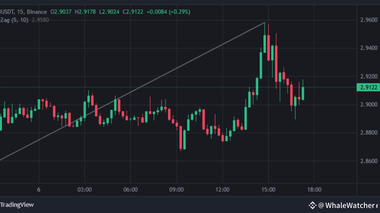 2. The Sharp Rejection: We then saw a strong impulsive push to a new high around ~$2.96, but it was immediately met with selling pressure, creating a sharp pullback from the peak.