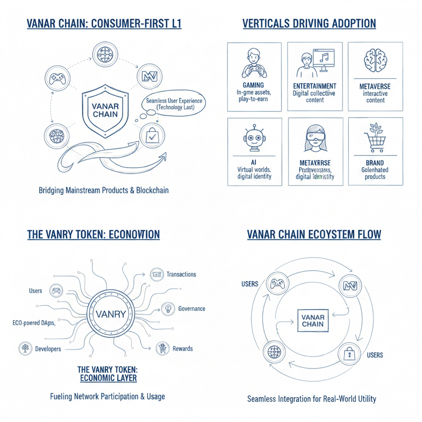 Vanar Chain sits in a lane that many projects talk about but very few can actually make practical, because it is trying to make a Layer 1 feel like it belongs in mainstream products where users care about experience first and technology last, and the project keeps anchoring that direction around consumer facing verticals like gaming, entertainment, metaverse experiences, AI, eco initiatives, and brand solutions, with the VANRY token acting as the economic layer that makes participation and usage possible across the network.
