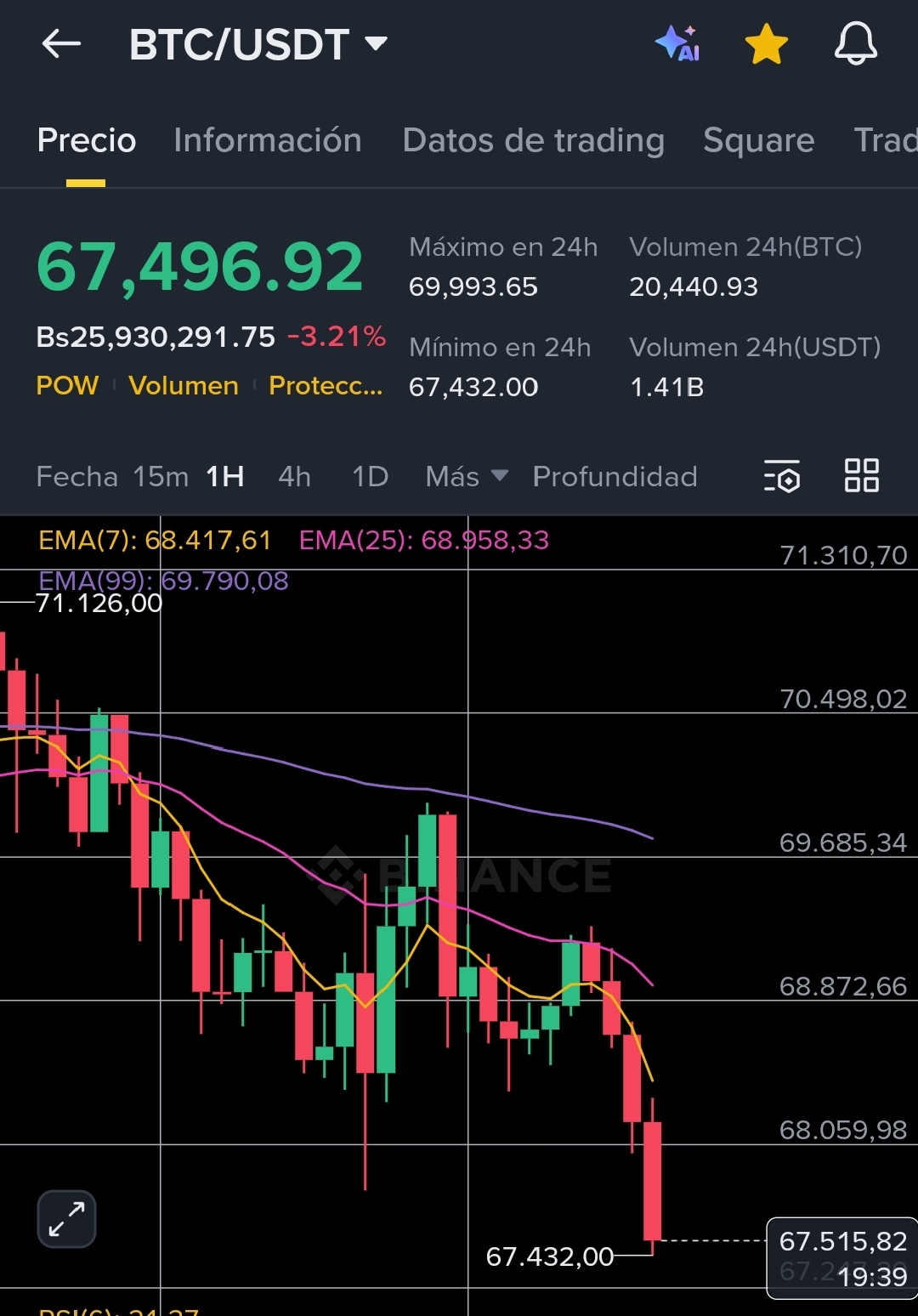 El Muro de los $67,000: Por ahora, los $67,432 han servido de suelo temporal. Si Bitcoin logra mantenerse sobre este nivel, podríamos ver un rebote técnico pronto.