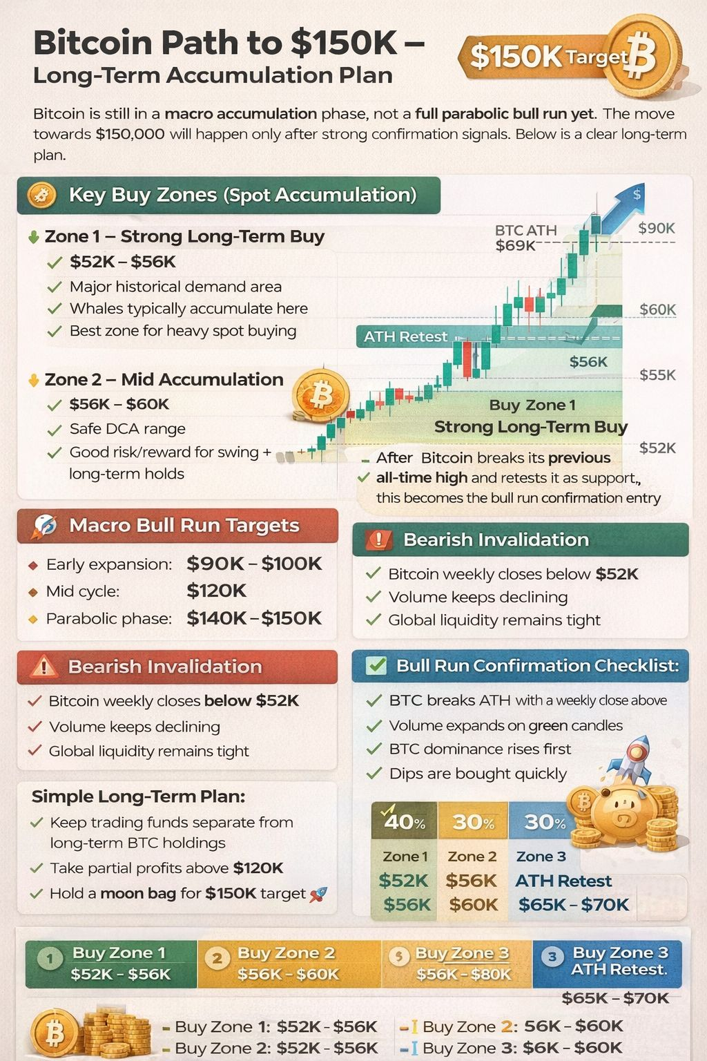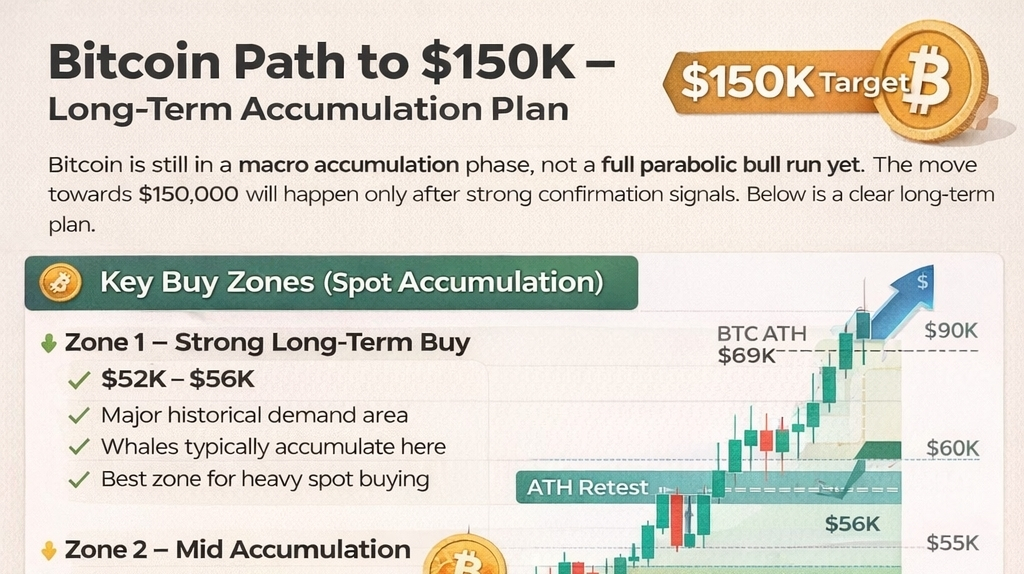 phase, not a full parabolic bull run yet. The move toward $150,000 will happen only after strong confirmation signals. Below is a clear long-term plan.