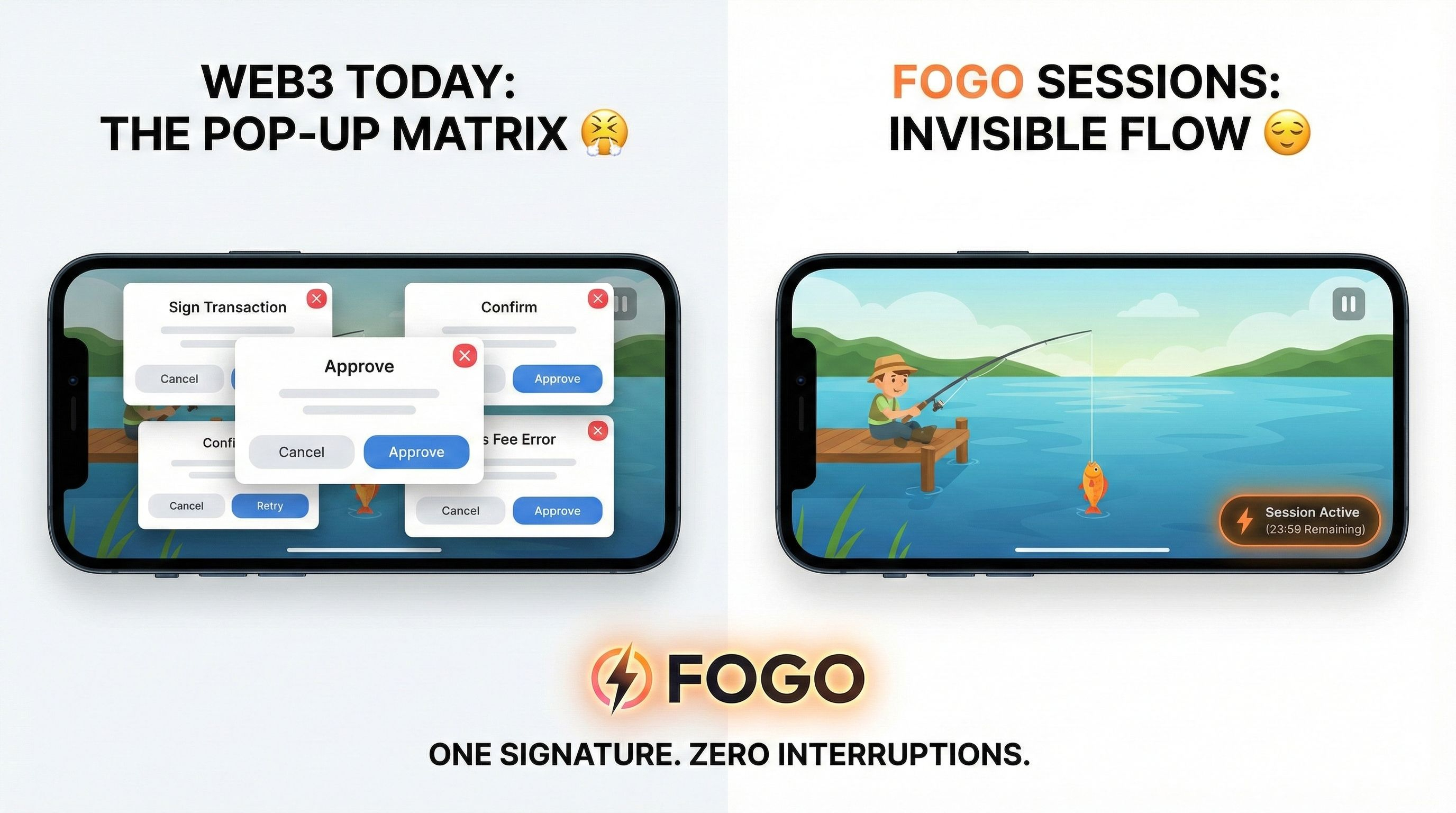 Fogo Sessions dismantled this completely. You sign once at the start of a session, authorizing a temporary key with limited permissions and a fixed expiration. For the next few hours, that key handles everything silently in the background while your main wallet stays frozen. No pop-ups. No interruptions. No approval fatigue leading to careless signatures.