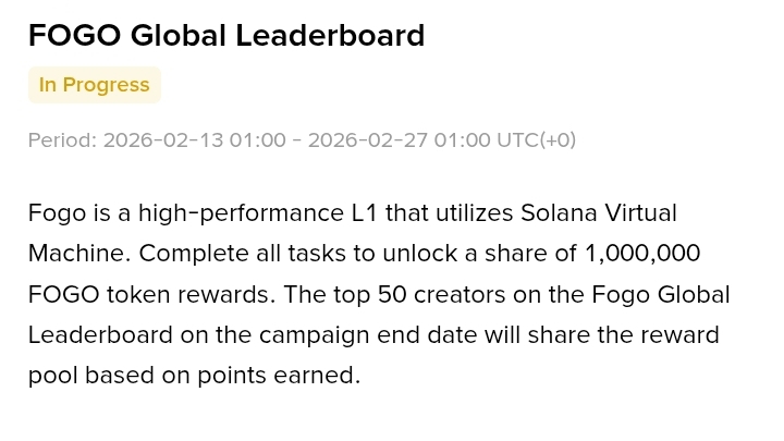 Post at least one original piece of content on Binance Square, with a length of no less than 100 characters and no more than 500 characters. The post must mention the project account @fogo, tag token $FOGO, and use the hashtag #fogo. The content must be strongly related to Fogo and must be original, not copied or duplicated. This task is ongoing and refreshes daily until the end of the campaign and will not be marked as completed.